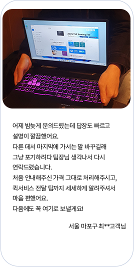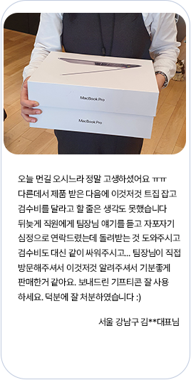 앞으로도 저희는 고객님께 진심으로 다가가고, 만족을 넘어 감동을 드릴 수 있도록 최선을 다하겠습니다.
